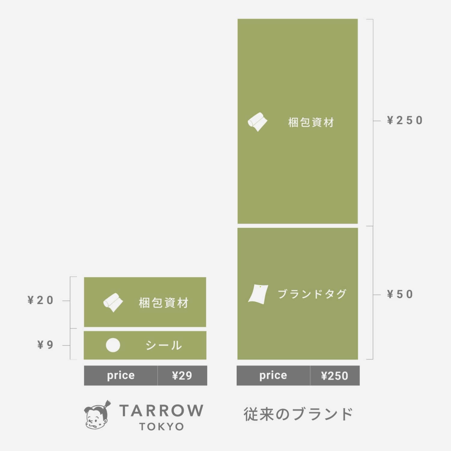 着用時には捨てられてしまう華美な梱包資材や下げ札のコストは、商品の価格に反映され、結局は、お客様の負担になってしまっているのです。