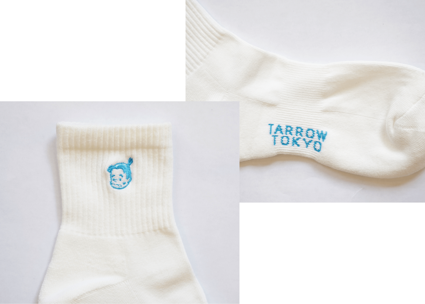 The soles are decorated with the TARROW TOKYO logo for a subtle accent. Additionally, the brand's mascot, "Taro-chan," is embroidered on the soles for a playful touch.