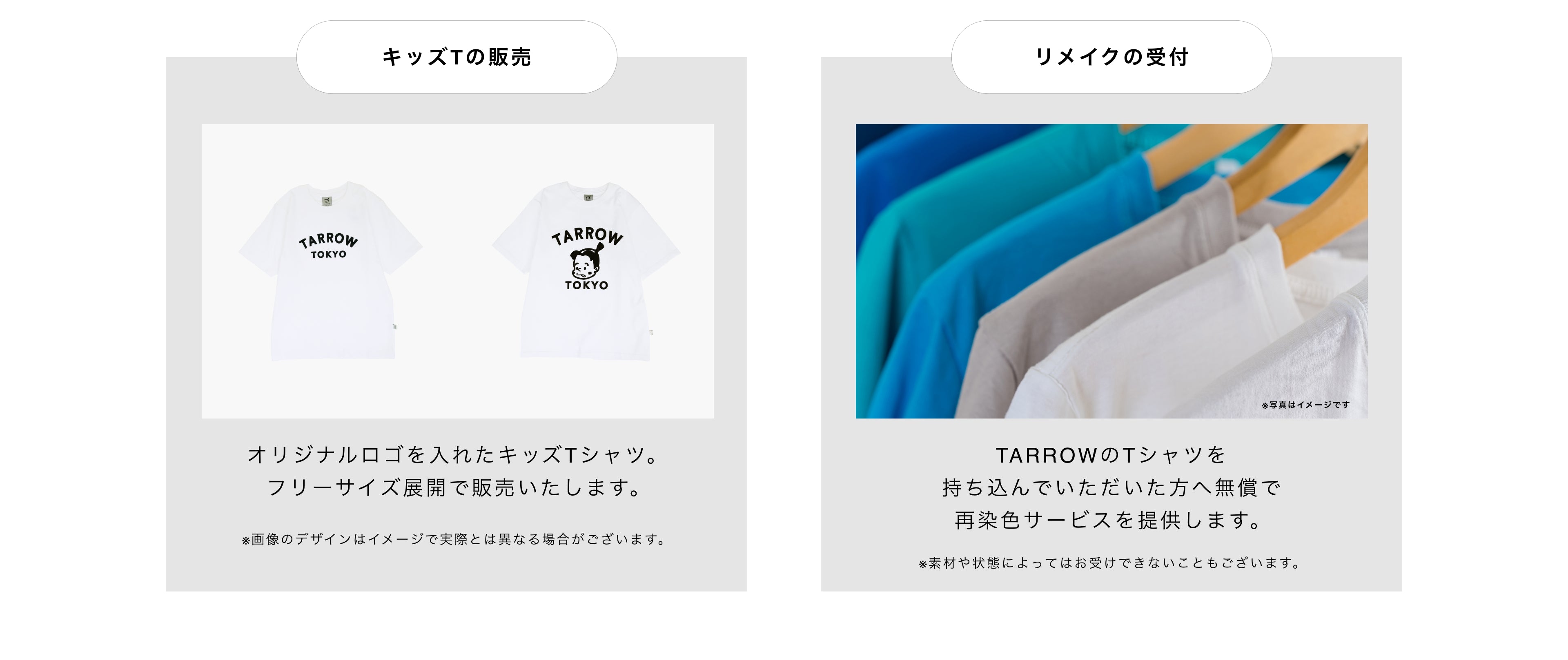 『T-SHIRTS MARCHE 2024』では、TARROWのTシャツを持ち込んでいただいた方へ無償で再染色サービスを提供します。