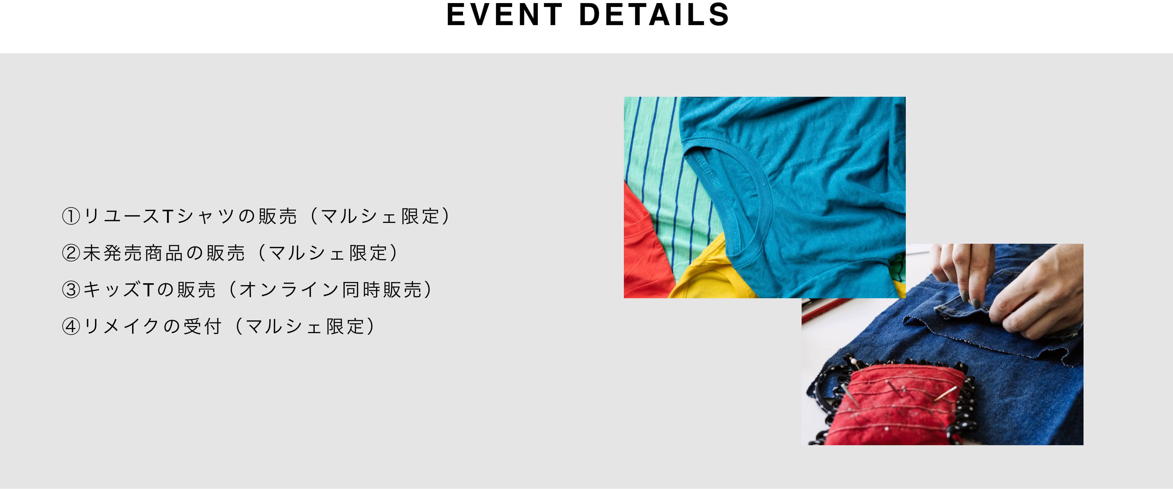 「服が長く大切に着てもらえる世界を作りたい」というブランドコンセプトを体現するため、7月20日(Tシャツの日)にリユース・リサイクルをテーマにしたマルシェ『T-SHIRTS MARCHE 2024』を開催します